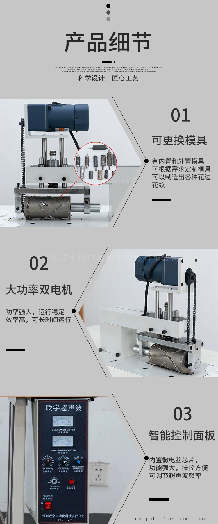 品牌:联宇机电 型号:LY-CSB200 动力形式:超声波 控制方式:数控 频段:中频 驱动方式:电动 作用原理:脉冲 升降控制:电动 焊接原理:对焊 作用对象:塑料 电流:交流 重量:150 kg 产品别名:超声波压花机